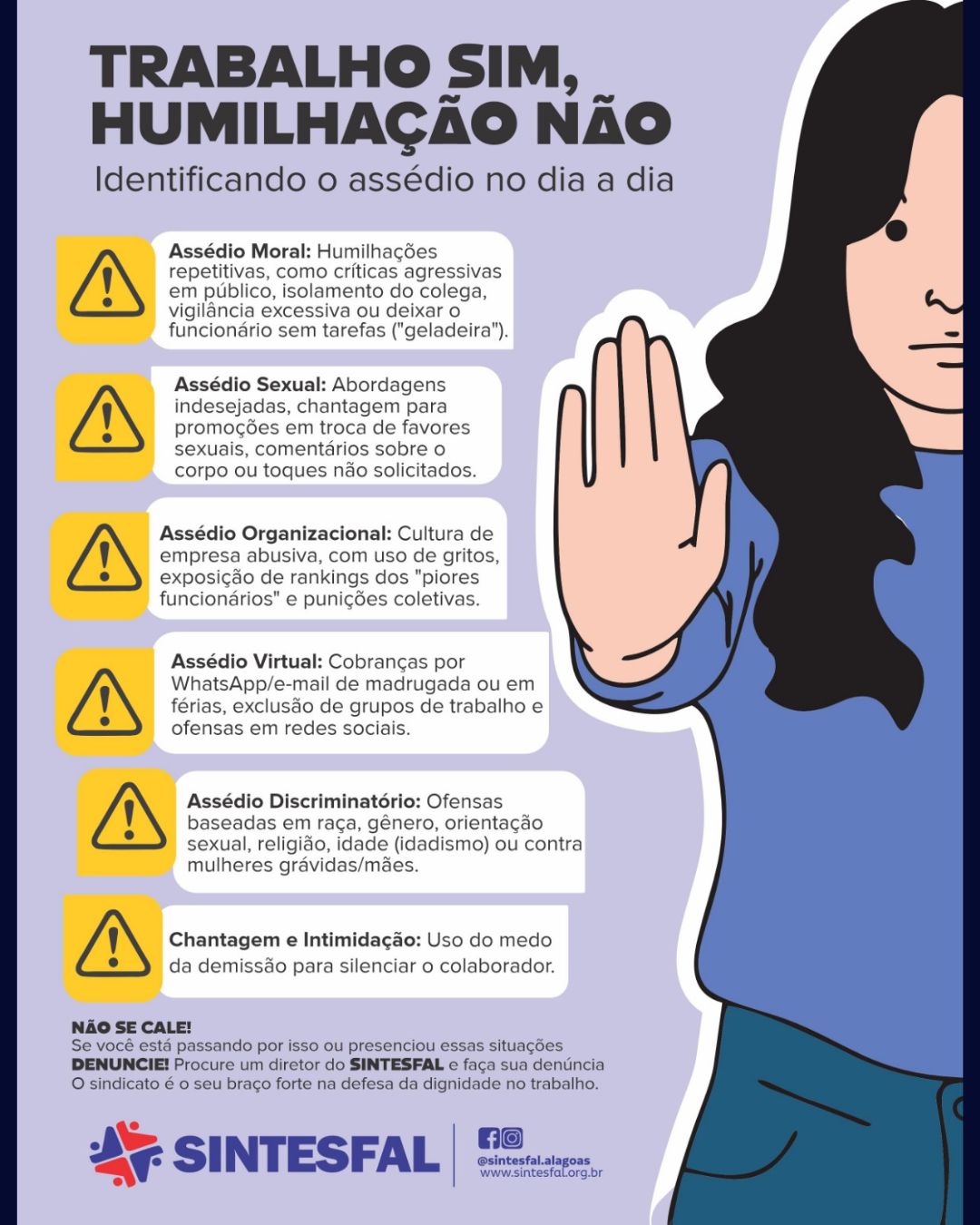 O Sintesfal destaca orientações para ajudar trabalhadores e trabalhadoras a identificar diferentes formas de assédio no ambiente de trabalho. A iniciativa busca conscientizar a categoria e incentivar a denúncia de [...]