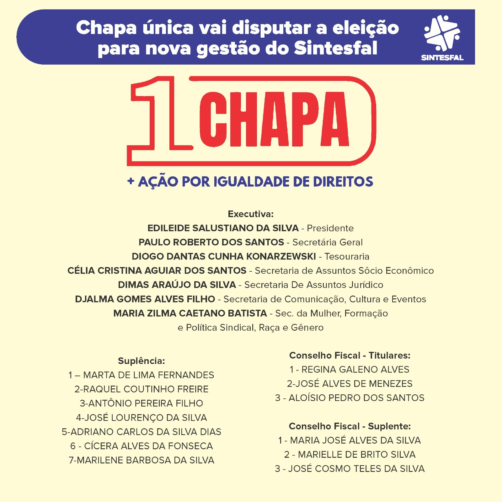 Chapa única vai disputar a eleição para nova gestão do Sintesfal