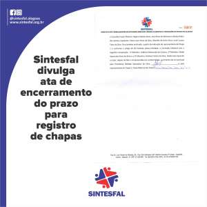 O Sintesfal divulga Ata de Encerramento do prazo para registro de chapas das eleições a serem realizada nos dias 17 e 18 de agosto de 2023, conforme determinações estatutárias, para gestão do quadriênio 2023/2027.