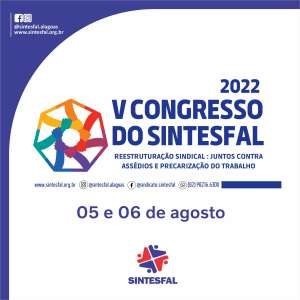 Nos dias 05 e 06 de agosto, o Sintesfal realizará o V Congresso no Centro Social da FETAG, na Mangabeiras com o tema, Reestruturação Sindical: Juntos Contra Assédios e Precarização do Trabalho.